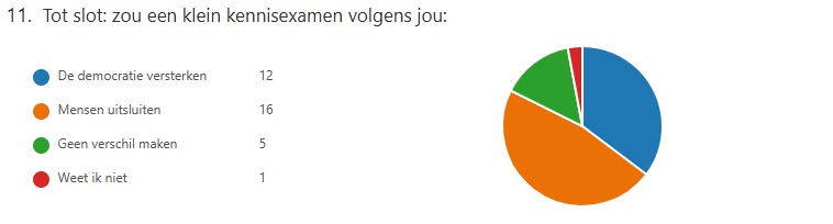 In maart vroegen Salland1 en HierinSalland of het eigenlijk beter is mensen eerst een examen te laten afleggen voordat ze mogen stemmen. De enquête is niet heel vaak ingevuld, maar een derde vindt dat zo'n gek idee nog niet. Eventueel zou iemand die er niks van weet zélf moeten overwegen niet te gaan stemmen. Zie hieronder resultaten.