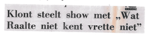‘Wat Raalte niet kent vrette niet’ slaat daar wel op, de alternatieve jongerenvereniging KLONT
