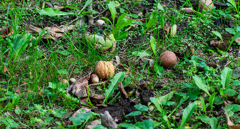 Ik fiets nog maar eens een rondje door het buitengebied van Raalte langs bomen die vol vruchten hangen. De eikels razen naar beneden en knerpen onder de fietsbanden. Moet je hier eens kijken: de walnoten liggen zelfs op het pad dat naast de boerderij loopt. Wanneer ik omhoog kijk zie ik dat er nog veel meer zullen vallen de komende dagen. In de walnotenboom openen de bolsters zich al zodat de noten meteen kant en klaar voor het oprapen liggen als ze eenmaal op de grond terecht zijn gekomen. Een heel verschil met de kastanjes die je uit hun bolsters moet peuteren. Toch maar even een zakje kopen voor onze eekhoorns die sinds kort weer volop en fanatiek aan het hamsteren zijn in de tuin. Mooi dat zij zo intuïtief de herfst voelen naderen. Je ziet het ook aan hun lijf want er groeien weer pluimpjes aan de oren en de vacht wordt dikker.