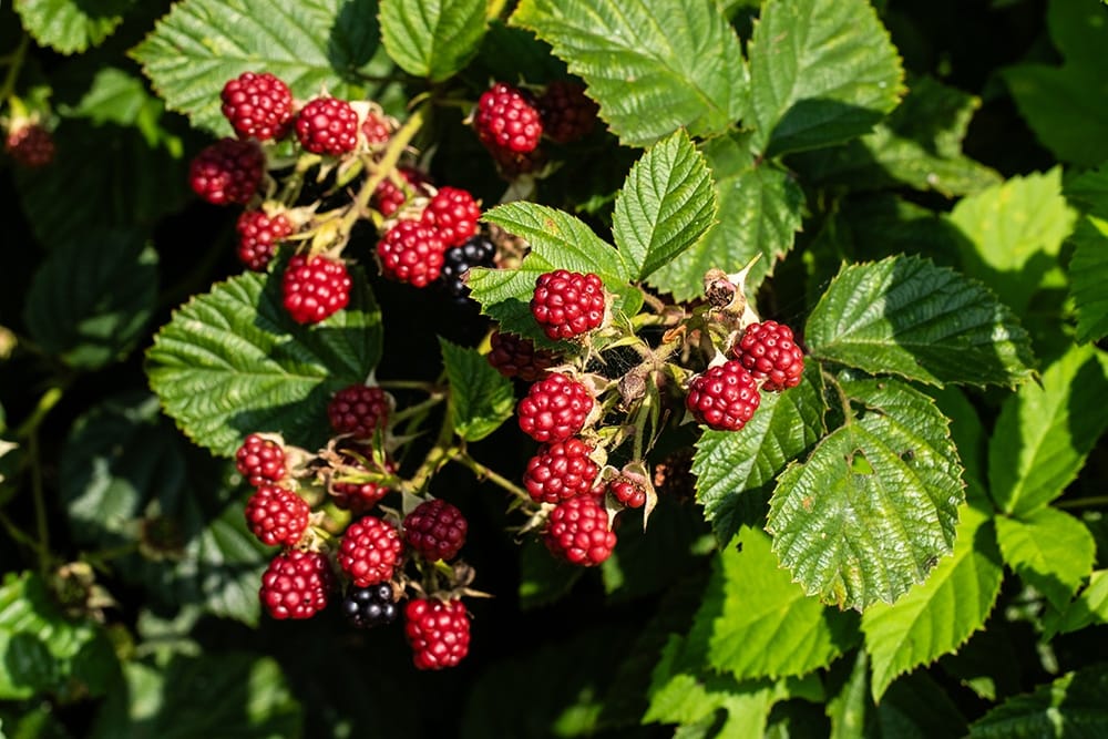 De rozen hebben dit jaar uitbundig gebloeid en ik heb de uitgebloeide bloemen bewust niet afgesnoeid zodat er nu mooie bottels aankomen! Hier zijn verderop in de herfst vast wel liefhebbers voor… De bramen echter hebben te lijden gehad van de droogte want hun vruchten zijn veelal klein gebleven en soms zelfs verschrompeld. Tja zij hebben dan ook geen beschermende verpakking en zijn dus extra kwetsbaar.