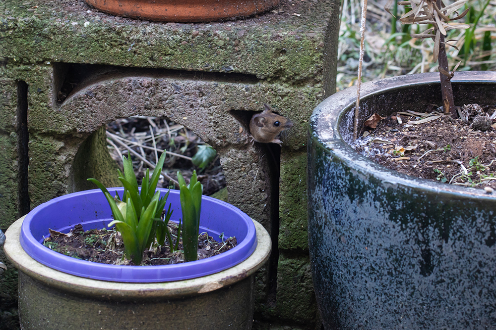 Ook de eekhoorns struinen momentreel een paar keer per dag de voederplekken af en maken ruzie met elkaar wie erbij mag. Soms zien we er wel drie tegelijk achter elkaar aan rennen door de bomen. Onder de voederplekjes worden de kruimels en gemorste zaadjes keurig opgeruimd door heggemussen, winterkoninkjes en muisjes.