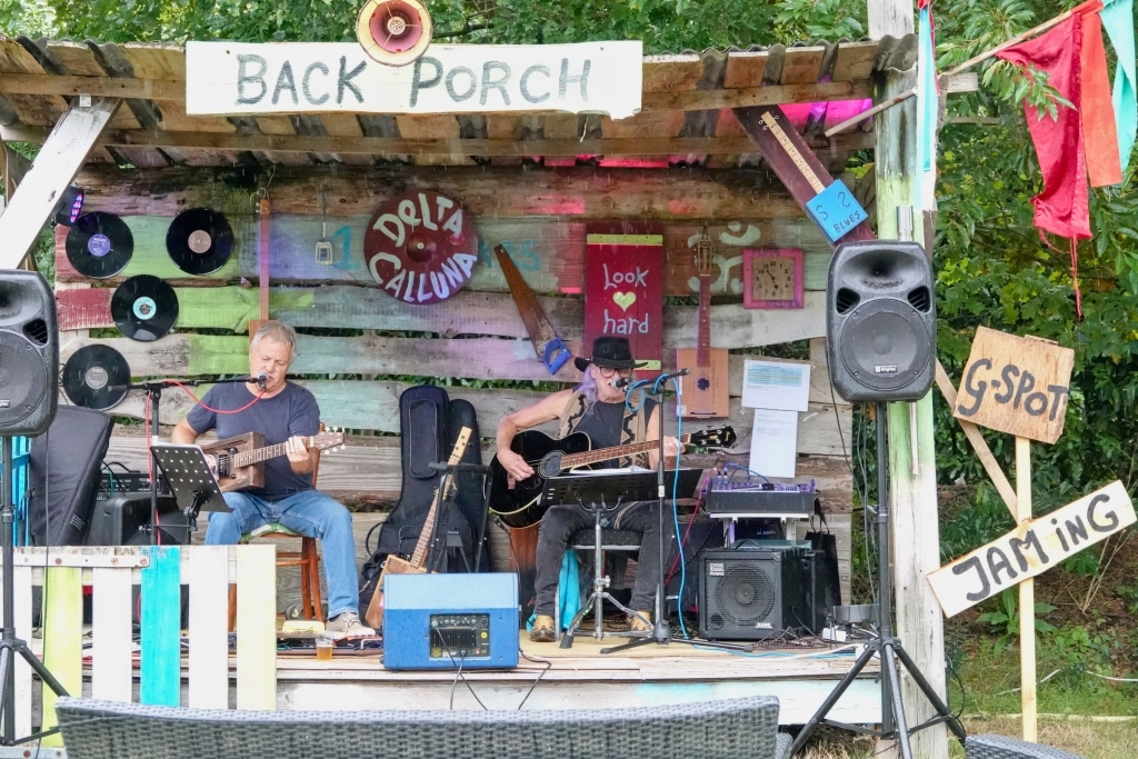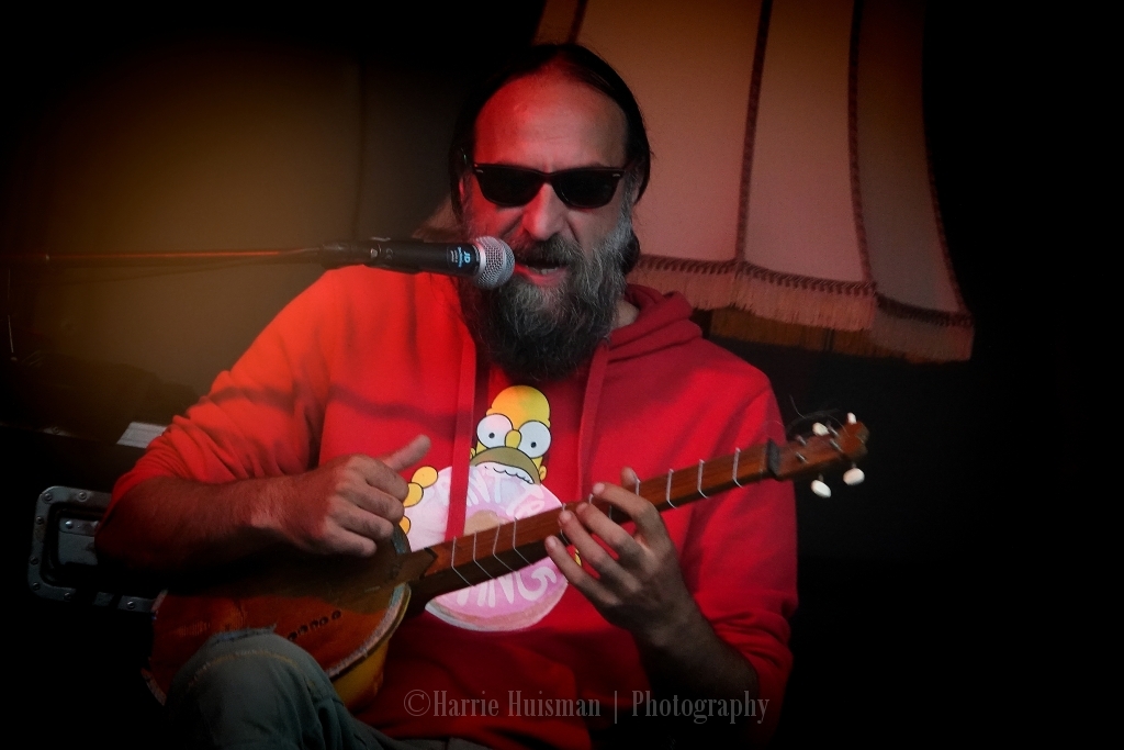 Op het kleine podium Back Porch was de aftrap van Hofnar Blues Night een semi-akoestische blues op alles behalve doorsnee gitaren. Akoestische blues zonder opsmuk.